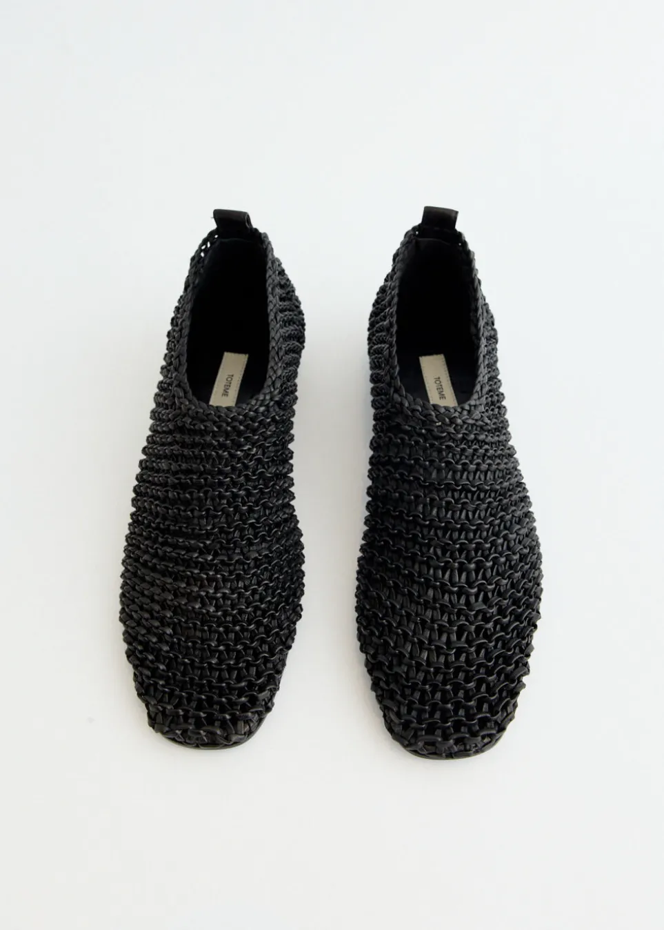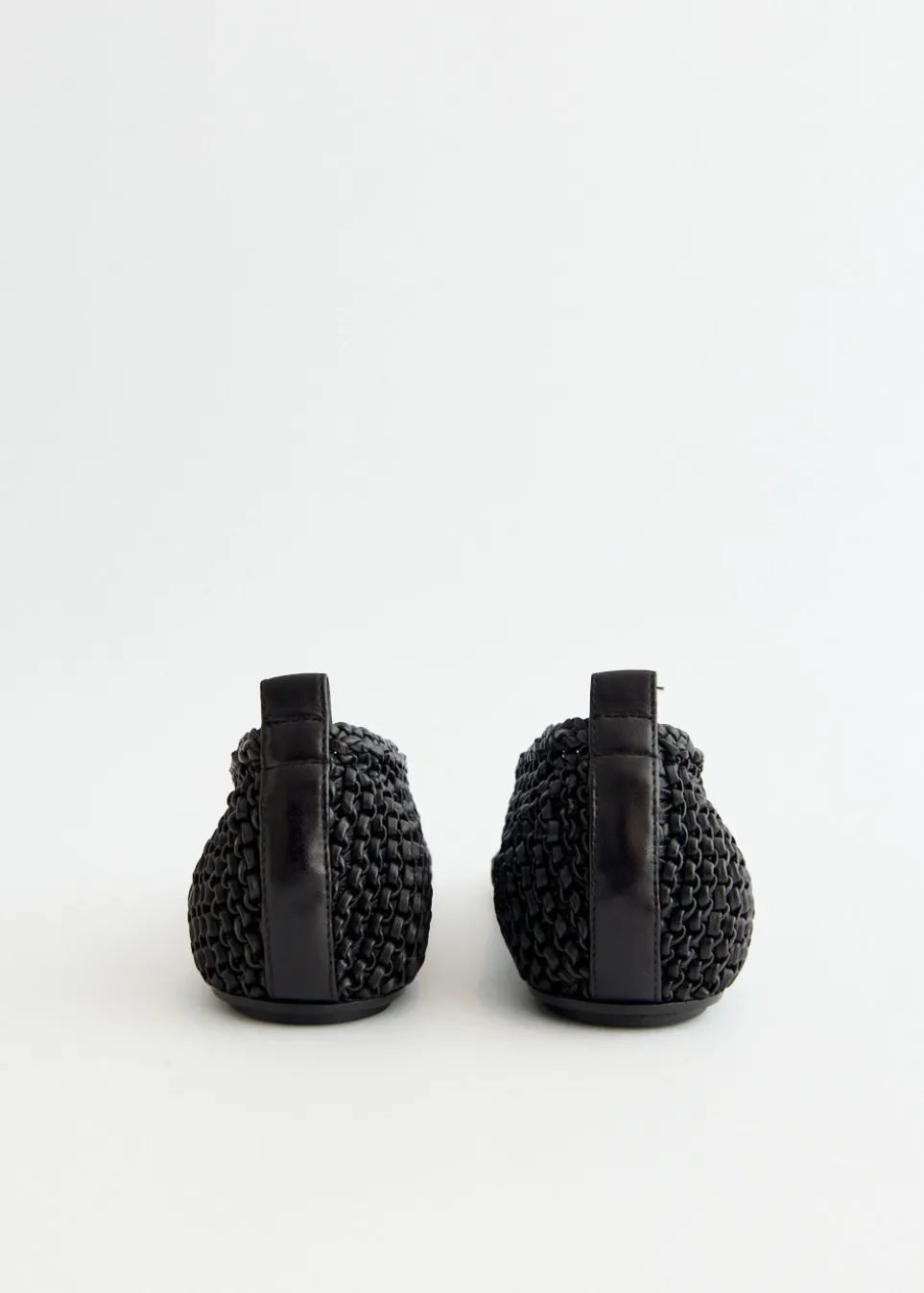 Founded in 2014 by Elin Kling and Karl Lindman, Toteme is a Stockholm-based brand renowned for crafting elevated essentials and timeless wardrobe foundations. The Woven Leather Ballerinas are meticulously crafted in hand-woven leather. Crafted in Italy, they offer a natural, foot-hugging silhouette, resting on a smooth leather insole. A perfect detail to peek out from beneath trousers and jeans.