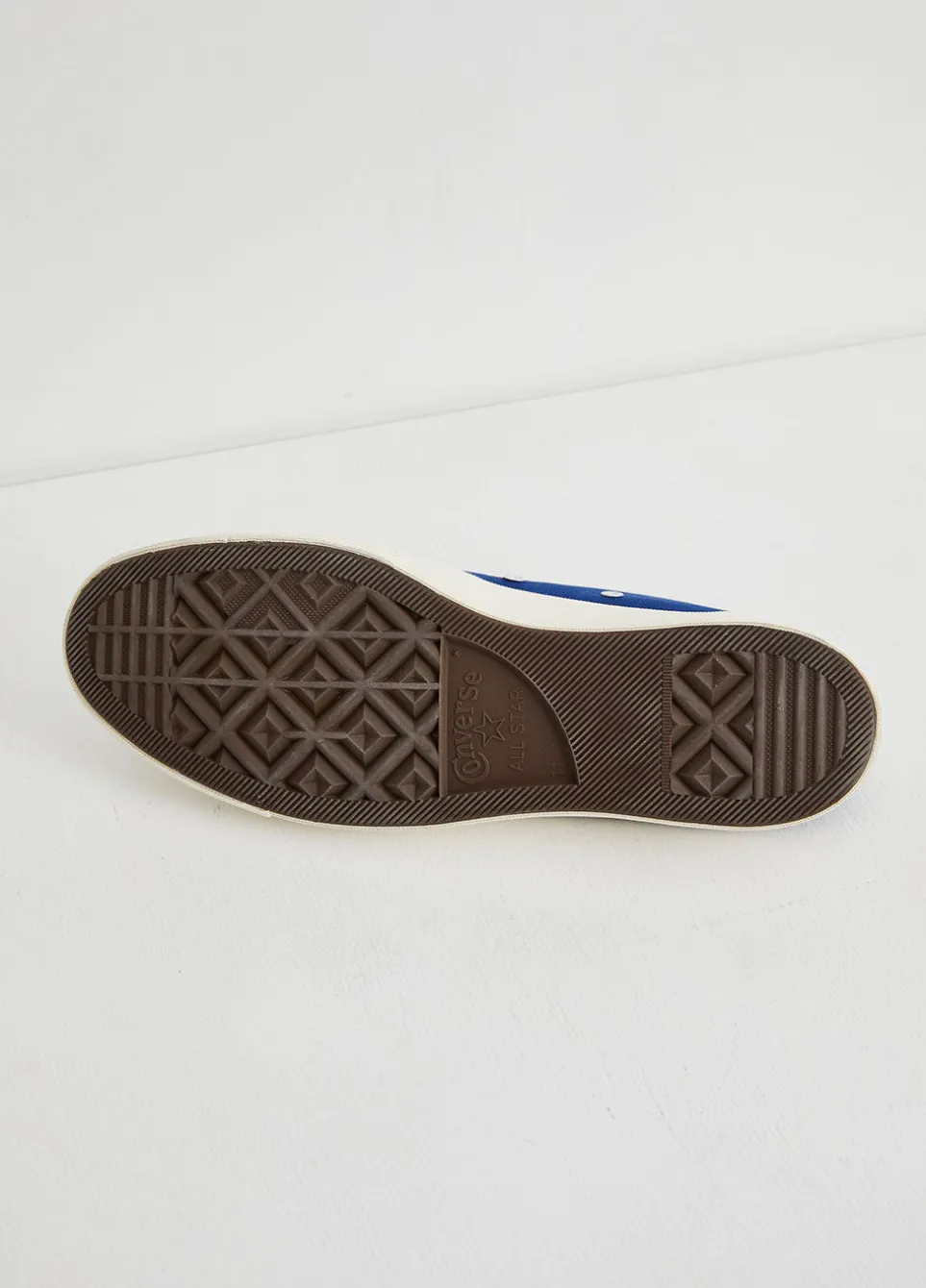 The long standing partnership between Comme des Garcons PLAY and Converse has been a cult classic since its inception in 2009. Upholding most of the iconic Chuck Taylor 70’s design elements, this iteration features a stripped back style with the addition of a signature PLAY logo on the lateral quarters. As part of the Winter 21 collection, we receive two fresh colours including ‘Blue Quarts’ and ‘Steel Grey’, both sporting a black peeping heart that we have all come to know and love.