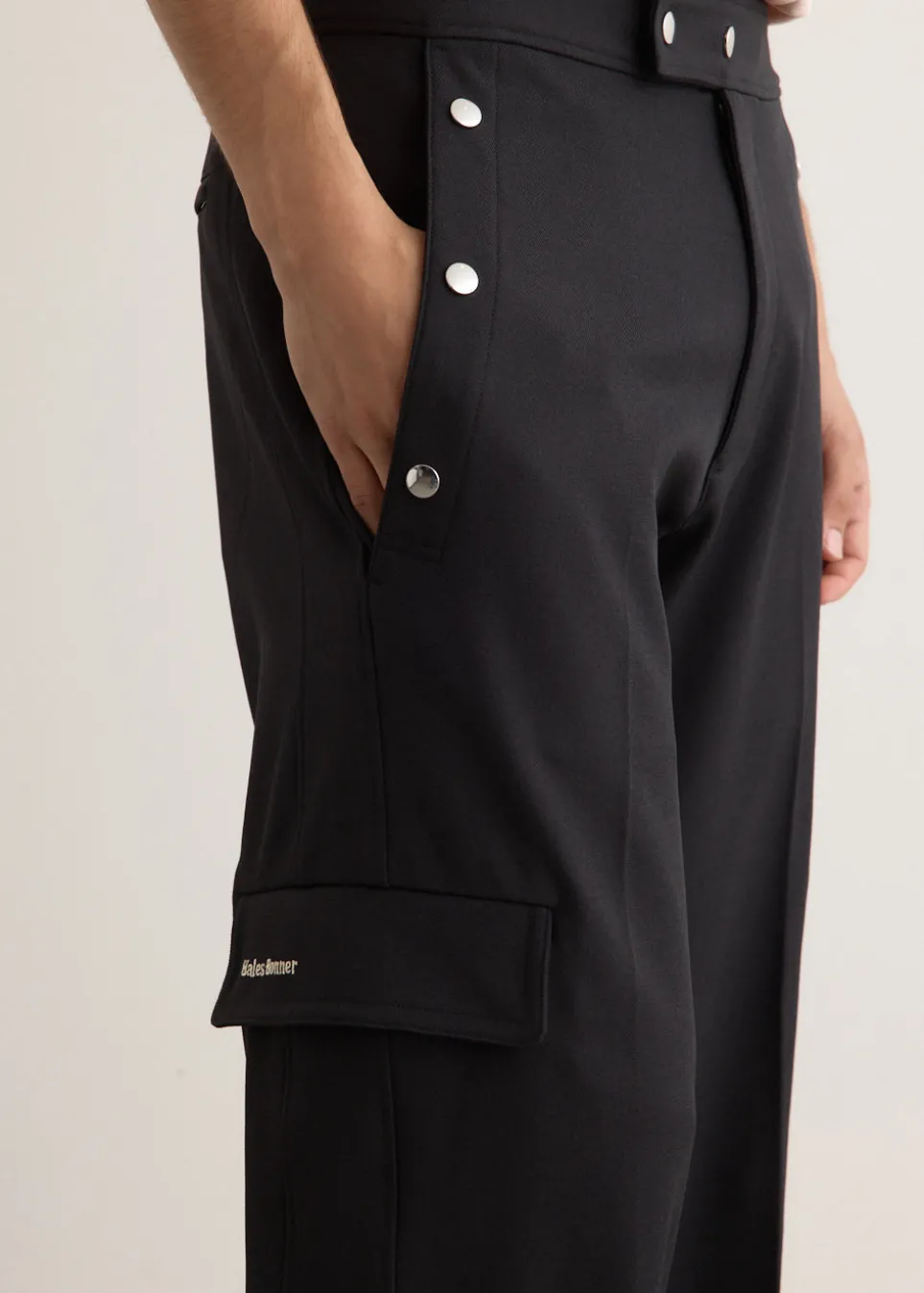 – Metal snap button detailing along the pockets